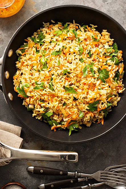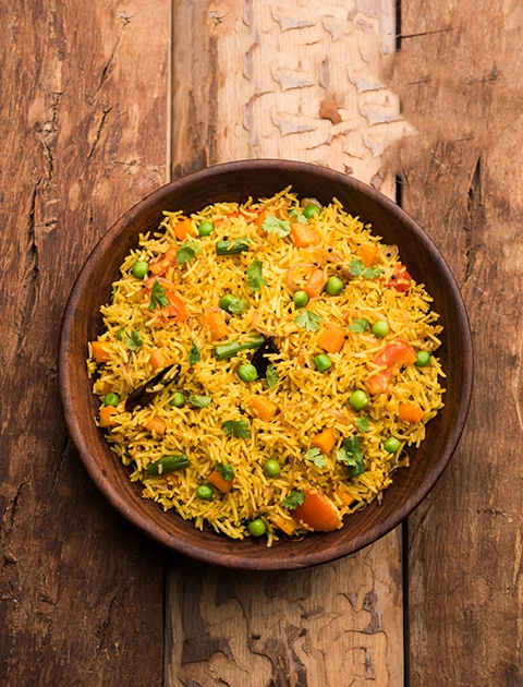 A full rice dish with mixed veg and warm spice that fits all moods. Great for filling meals without heavy oil or sharp heat.