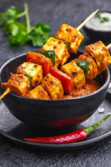 Paneer Delights: Vegan Paneer Tikka Mossala, Jalfrezi, Karahi, and Palak Paneer Tikka give rich, comforting, and mild-to-bold options.
